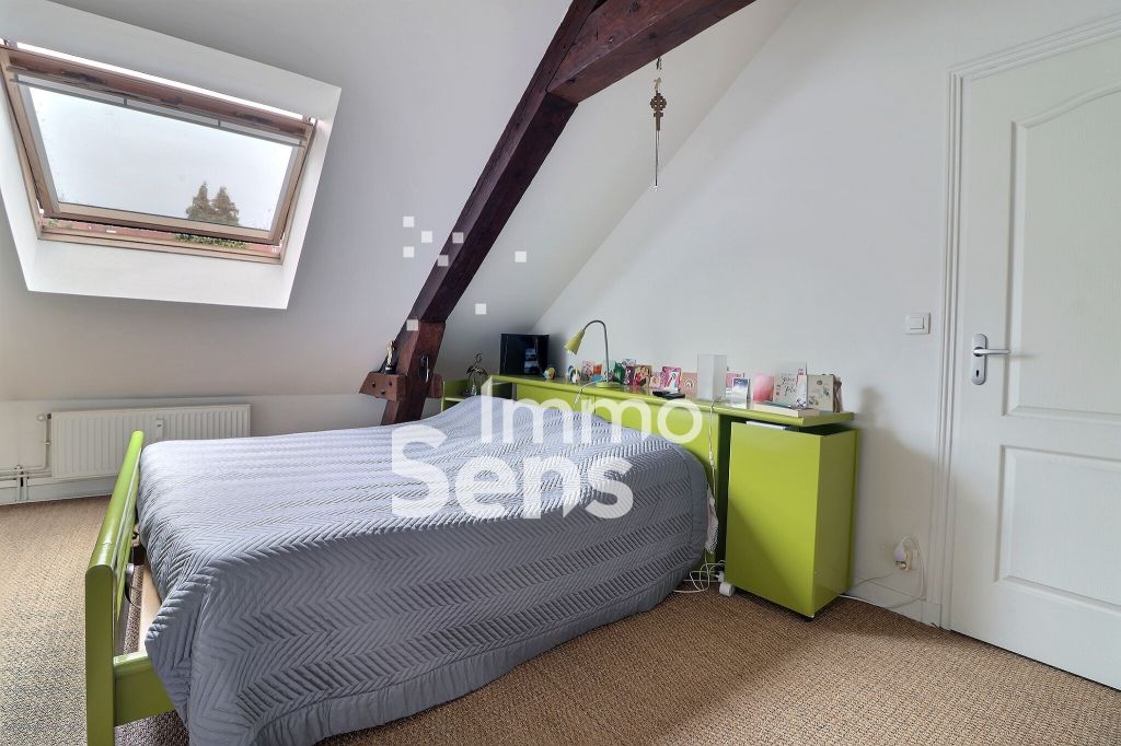 L'étage comprend deux chambres mansardées aux poutres apparentes, une salle de bain avec douche et baignoire et wc séparés.