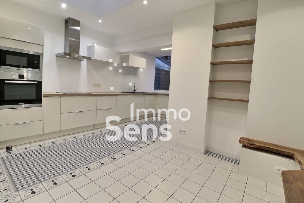 Entièrement rénovée, elle ne nécessite aucun travaux et offre de beaux volumes. Le rez-de-chaussée se compose d’une entrée accueillante, d’un vaste double séjour traversant avec insert et d’une grande cuisine équipée ouvrant sur une agréable terrasse paysagée d’environ 40 m2, idéale pour les repas en extérieur. Une buanderie vient compléter ce niveau.